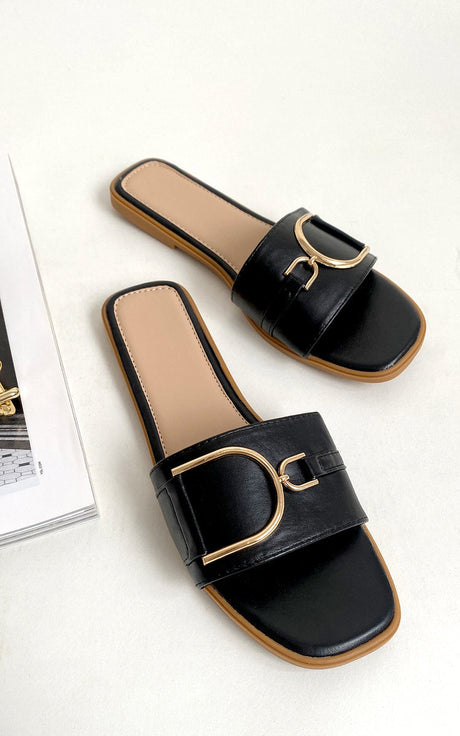 Gold Trim Detail Two Strap Flat Sandals