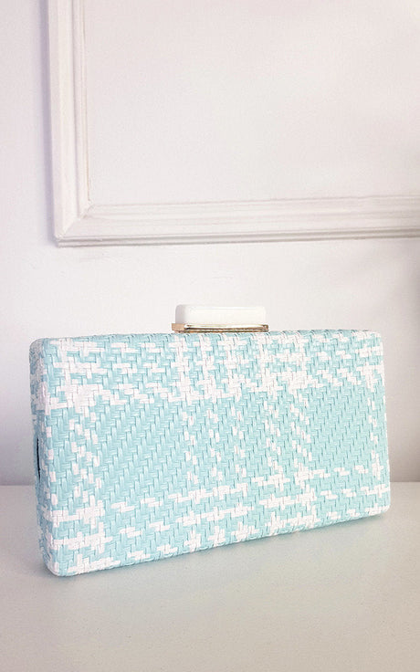 Woven Box Clutch with Long Strap Detail