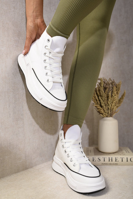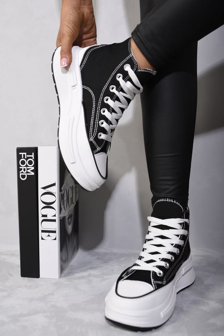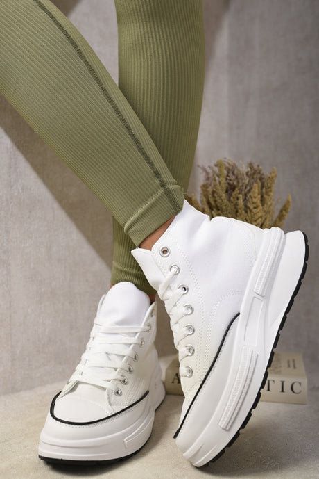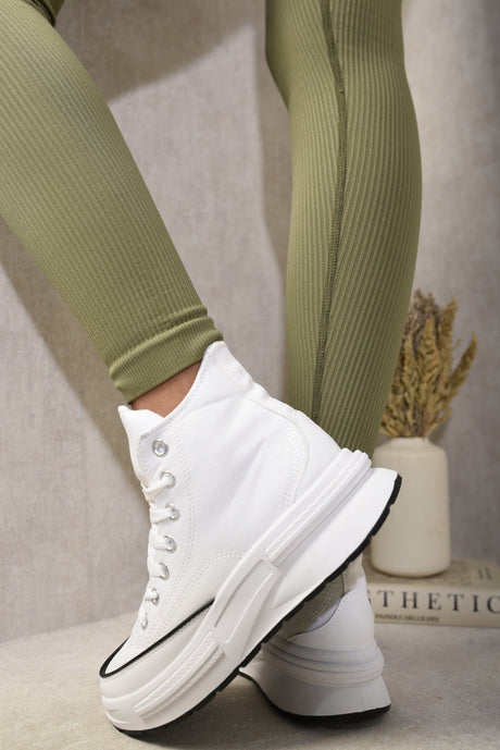 High Top Lace Up Platform Ankle Trainers with Decorative Detail