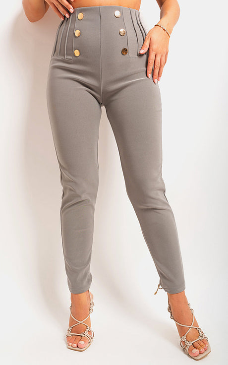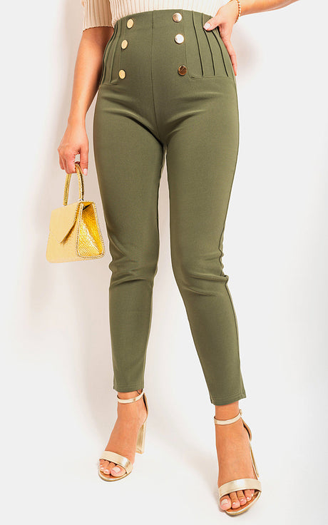 High Waisted Button Front Detail Trouser
