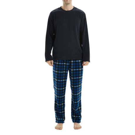 Mens Navy Check Thermal Fleece Pyjama Set with Luxury Design