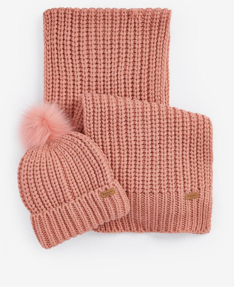 Barbour SALTBURN BEANIE & SCARF Gift Set Womens Pink Rust
