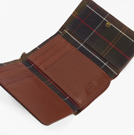 Barbour ROSA LEATHER French Purse Womens Brown/Classic Tartan