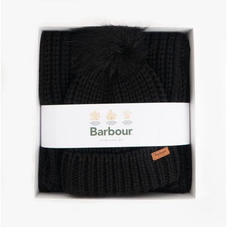 Barbour SALTBURN BEANIE & SCARF Womens Gift Set Black