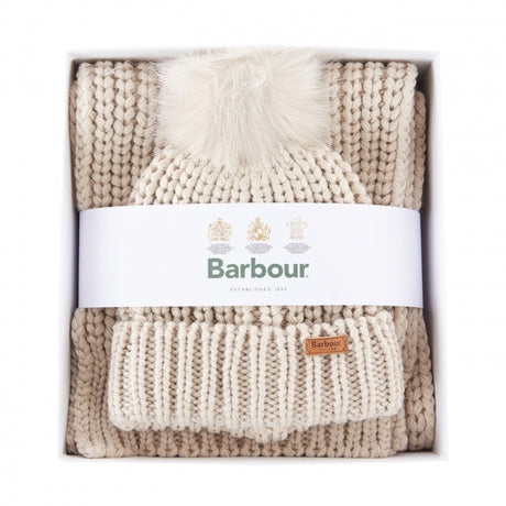 Barbour SALTBURN BEANIE & SCARF Womens Gift Set Pearl