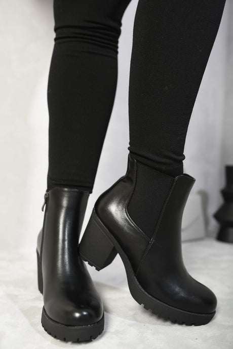 Block High Heel Boots with Zip Detail