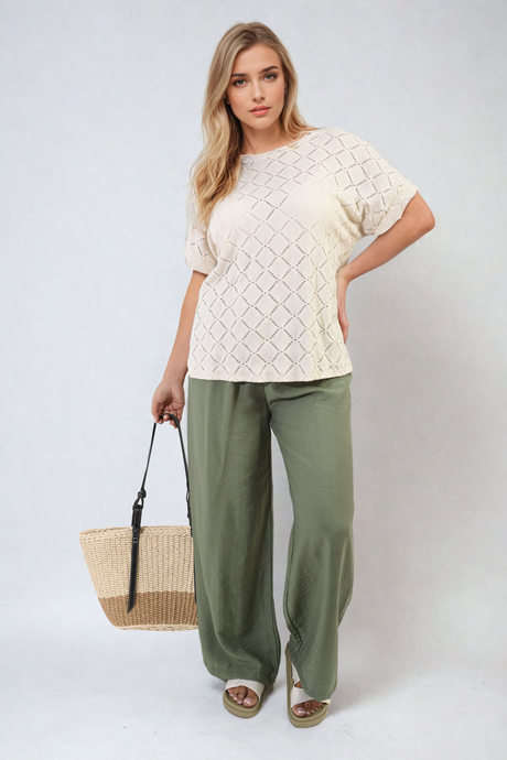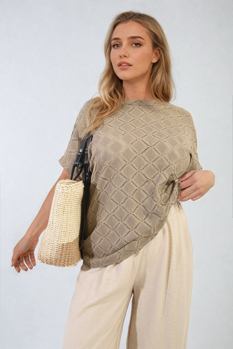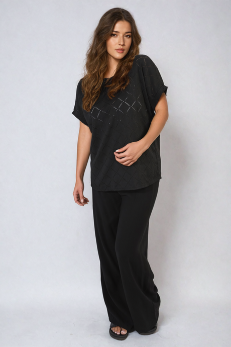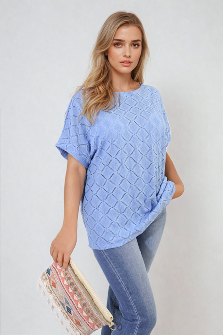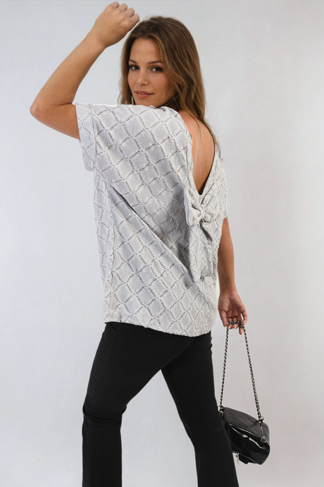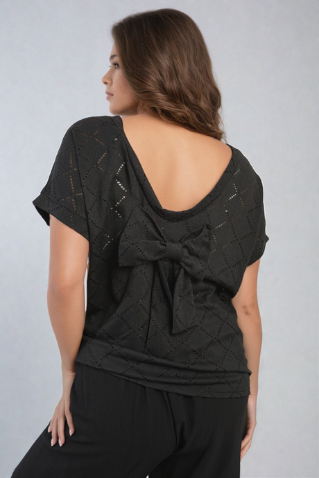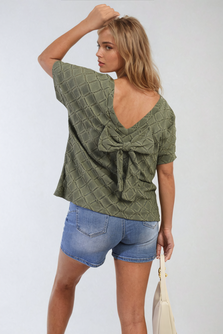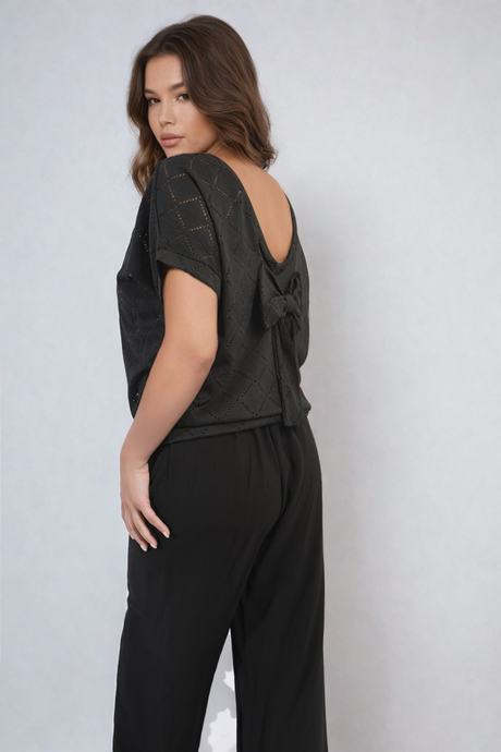 Bow Back Eyelet Details Short Sleeve Oversized Top