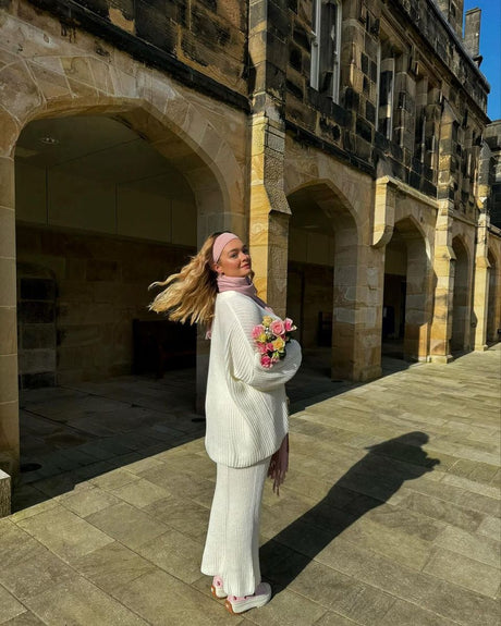 Chunky Knitted High Roll Neck Top Bottom Co-ord Set