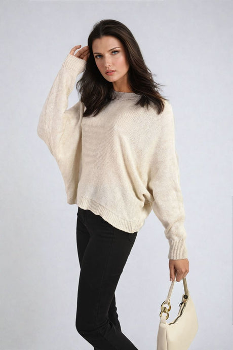 Crew Neck Back Patterned Knitted Jumper
