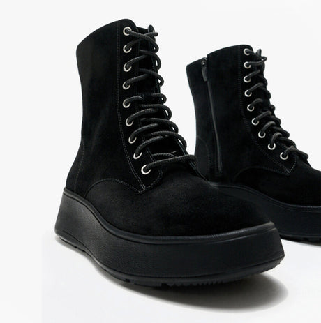 FitFlop F-MODE SUEDE LACE-UP FLATFORM Ladies Ankle Boots All Black