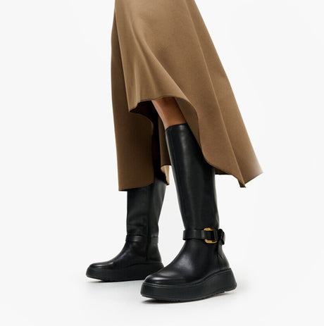 FitFlop F-MODE SQUARE-RING LEATHER FLATFORM Ladies Tall Boots Blac