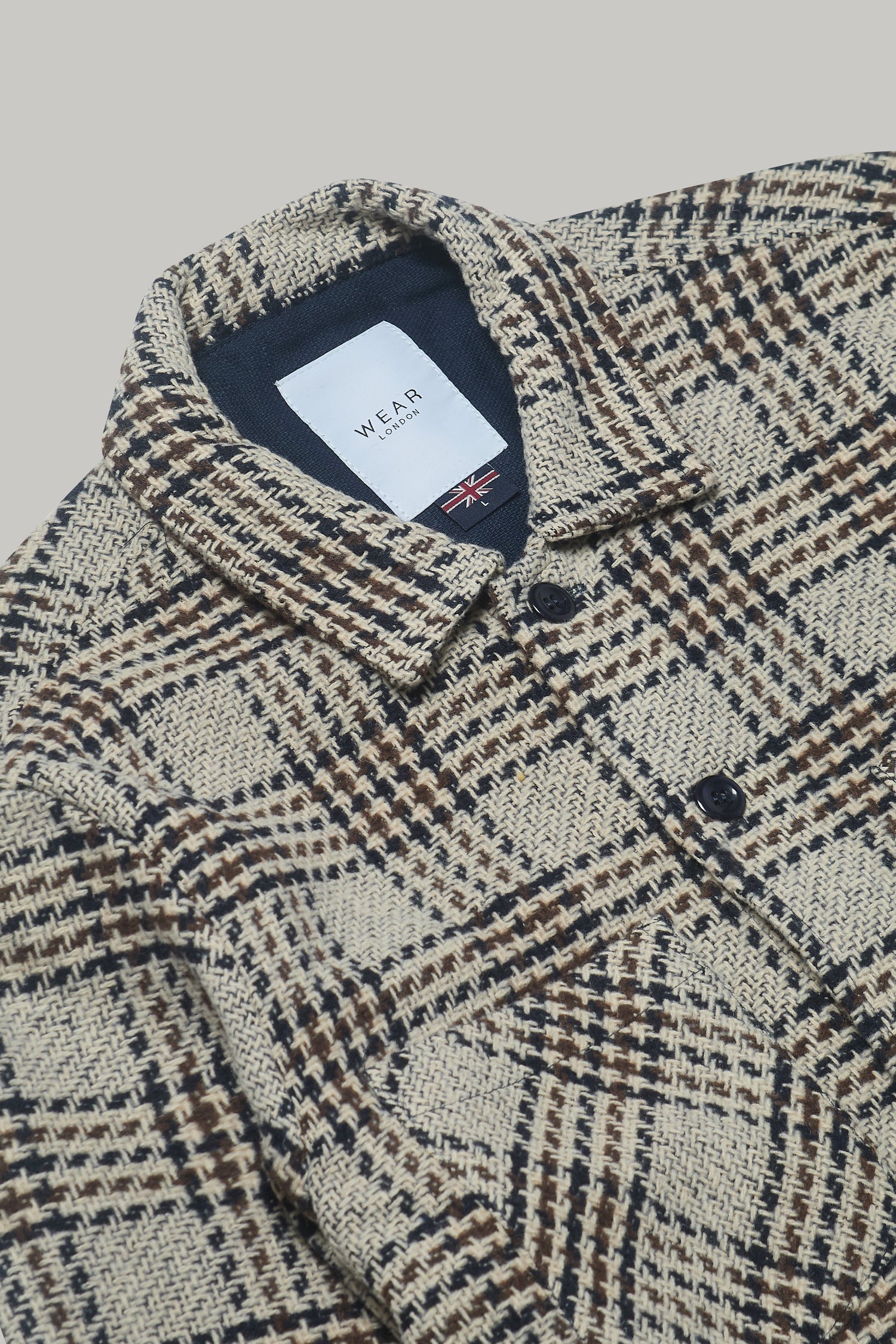 Introducing the Bart Over Shirt in Dogtooth Ecru Oat Grey