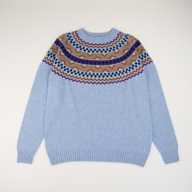 The unmistakable geometric patterns of the Fair Isle jumper have become a symbol of British culture and has long been a favourite of the Royal Family dating back to the 1920s. The Soho is our most technically advanced jumper due to the complex knitting techniques required for the seamless yoke pattern.