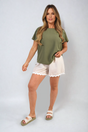 Ruffle Short Sleeve Top - Khaki / M/L is backordered and will ship as soon as it is back in stock.