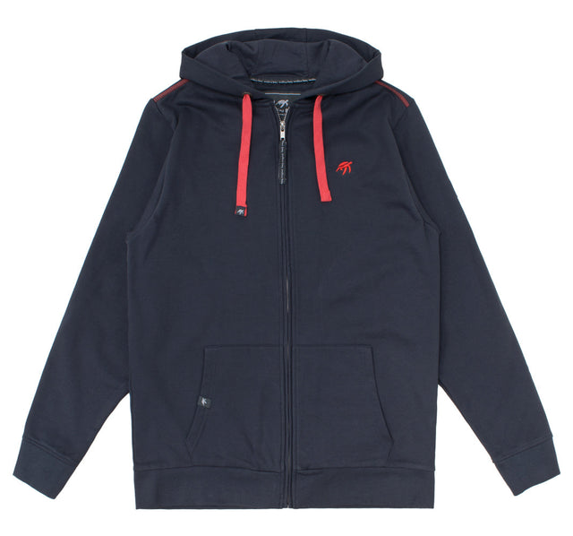Soft for comfort, in a classic shape and with deep pockets to keep hands cosy, this zip through hoody is perfect for layering over the Mullins Club polo.The soft cotton lining will keep you really warm and offers you more practicality and comfort with the ribbed hem and cuff. Contrast Mullins Bay side on print at the back.