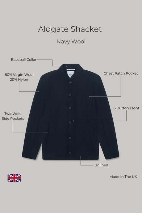 Sale price £60.00 Regular price £90.00Unit price /UnavailableIn stock (28 units) Aldgate Shacket - Navy Cashmere Wool