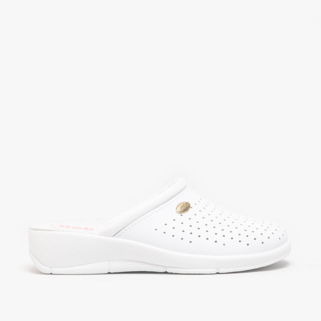 DEK ANGIE Womens Leather Mule Clogs Sandals White