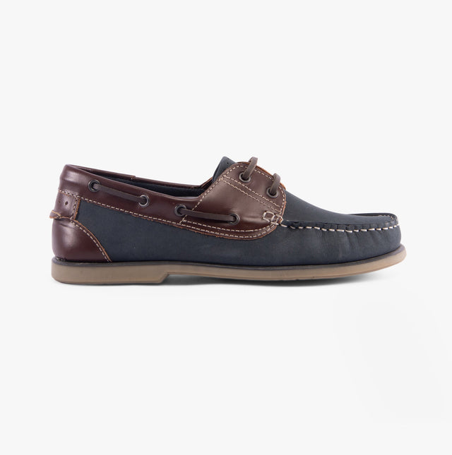 DEK RIVER Mens Nubuck Moccasin Boat Shoes Navy Blue/Brown