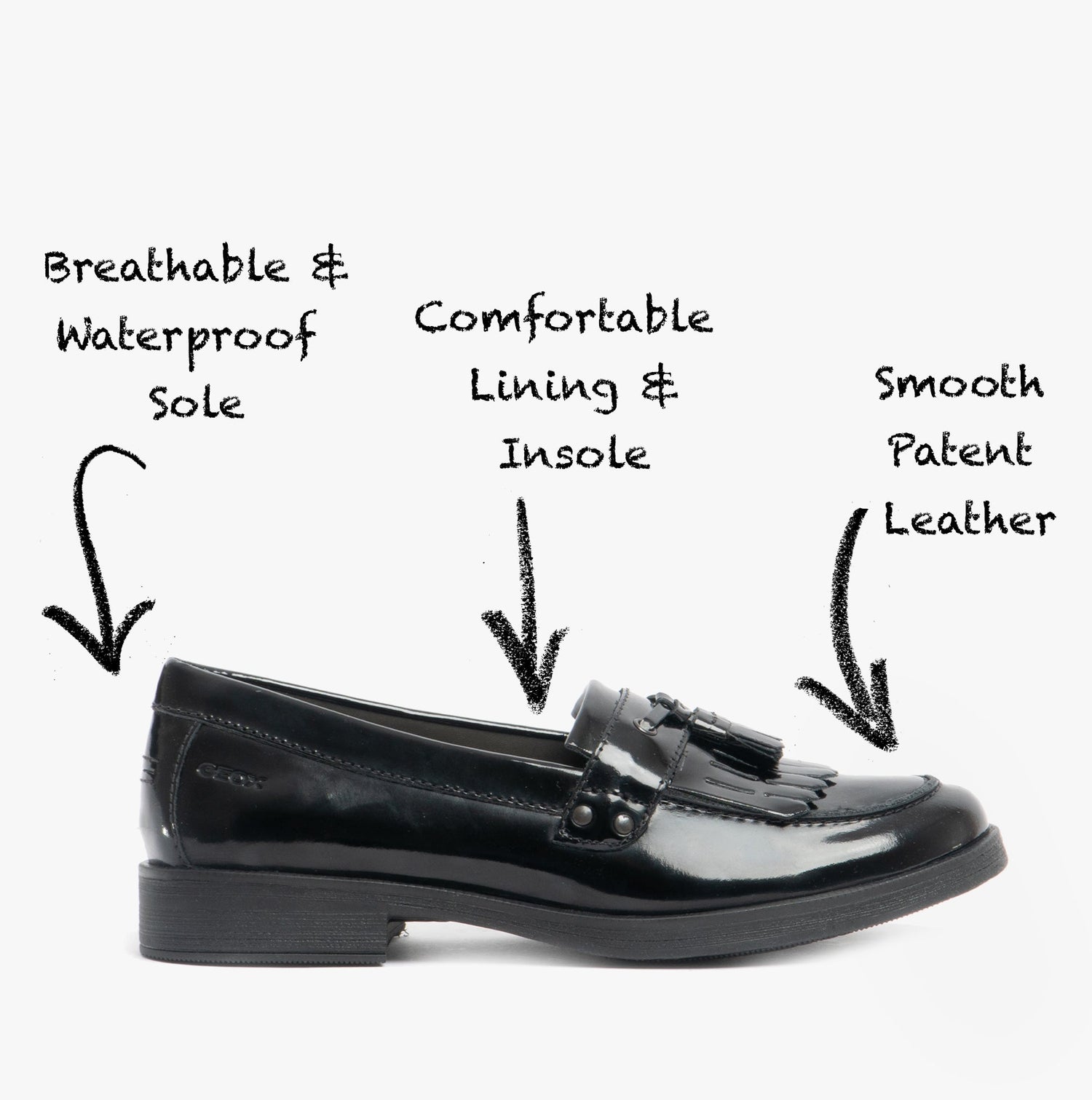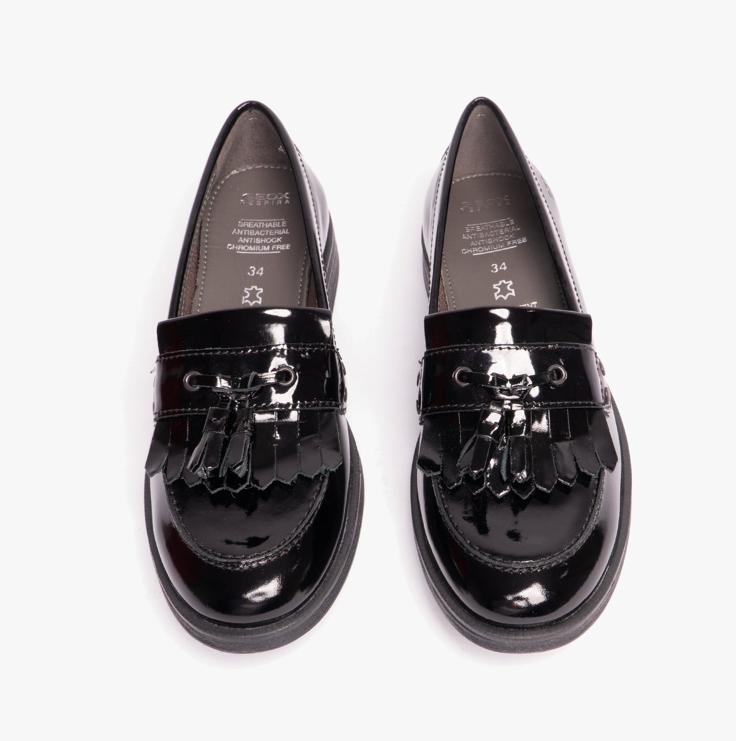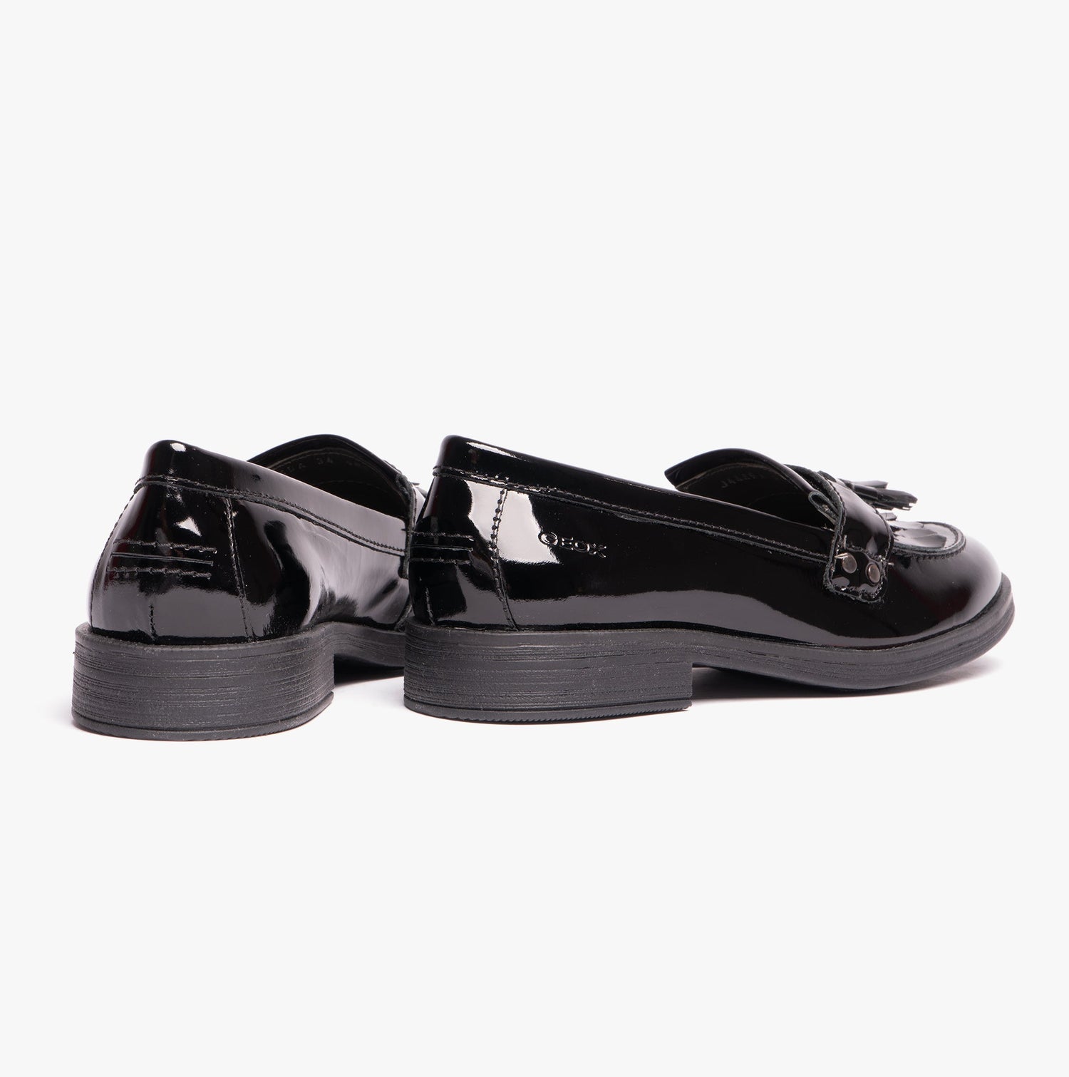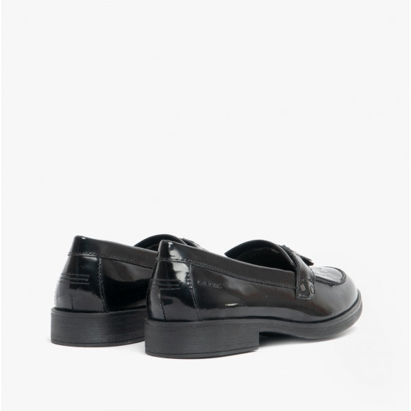 GEOX JR AGATA Girls Moccasin Tassel School Shoes Patent Black