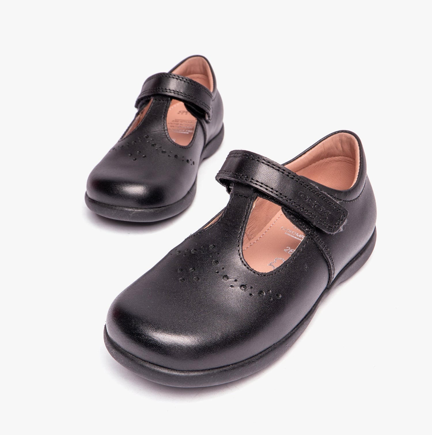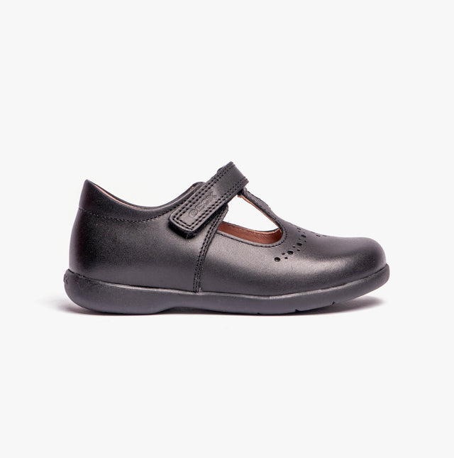 GEOX NAIMARA G B Girls Leather Touch Fasten School Shoes Black
