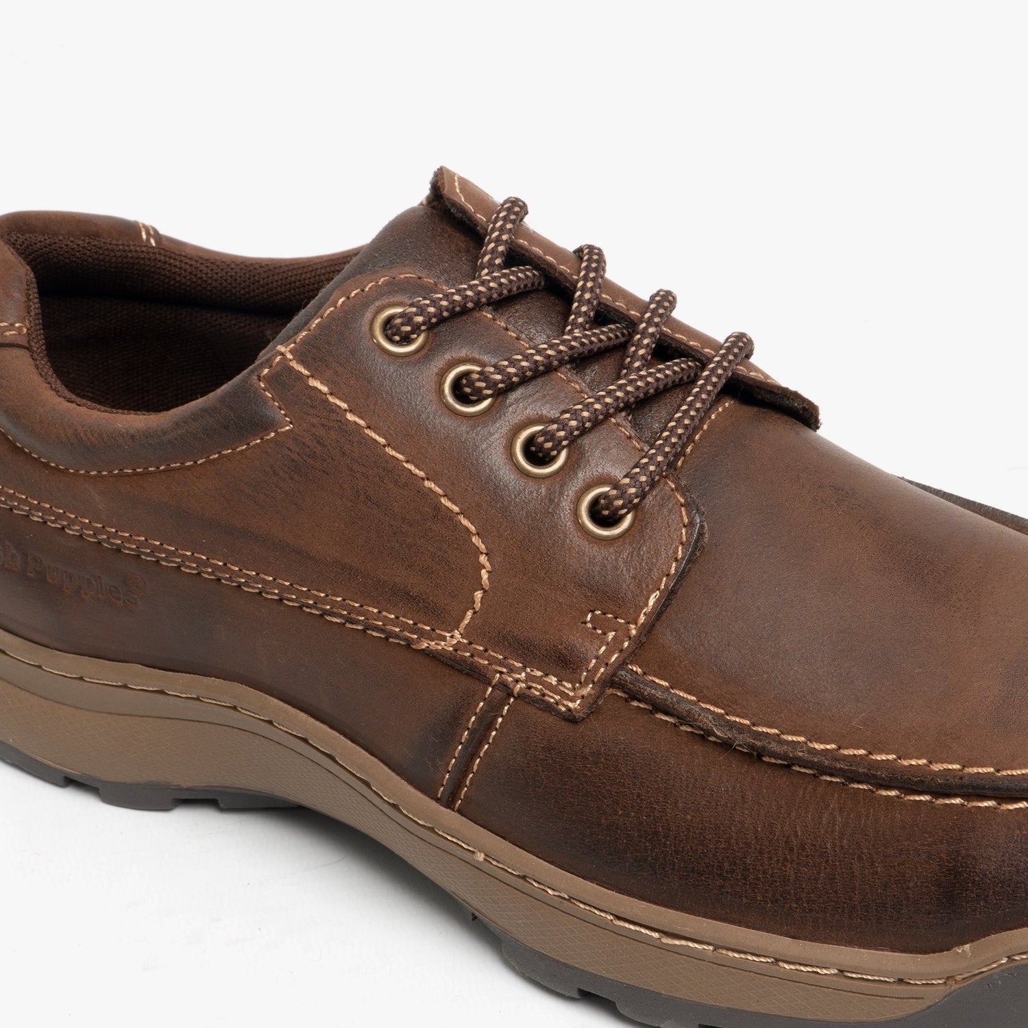 Hush Puppies TUCKER Mens Leather Casual Shoes Brown