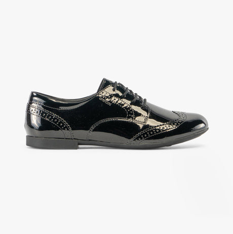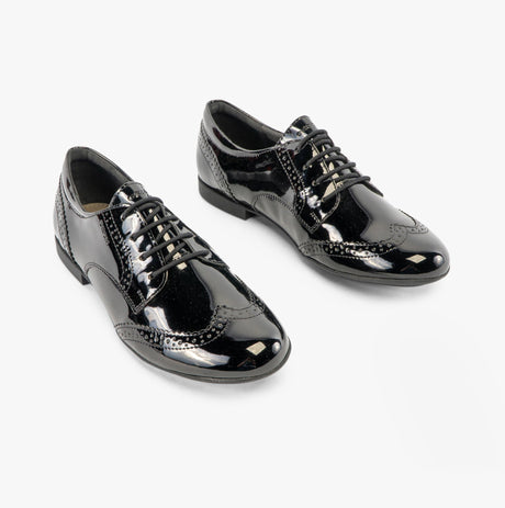 GEOX PLIE B Girls Lace Up School Shoes Patent Black