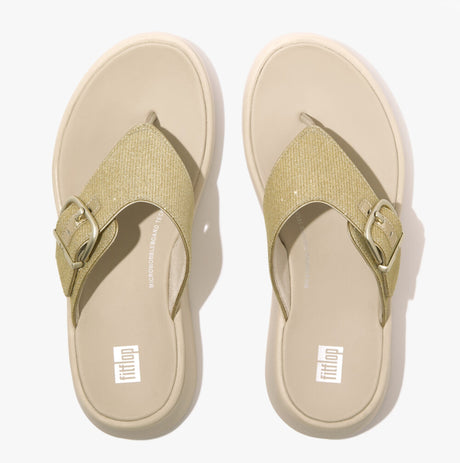 FitFlop F-MODE BUCKLE SHIMMERLUX FLATFORM Womens Toe Post Platino