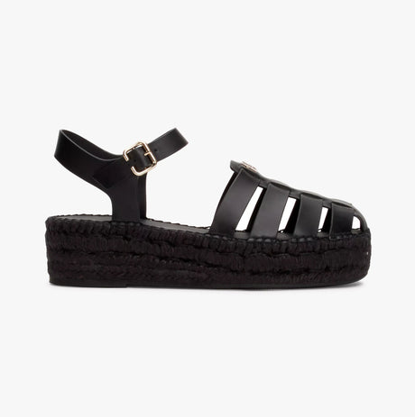 FitFlop ELOISE Womens Espadrille Strappy Wedge Sandals Black