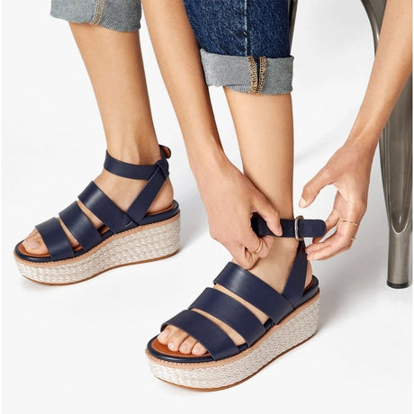 FitFlop ELOISE Womens Espadrille Strappy Wedge Sandals Midnight Navy