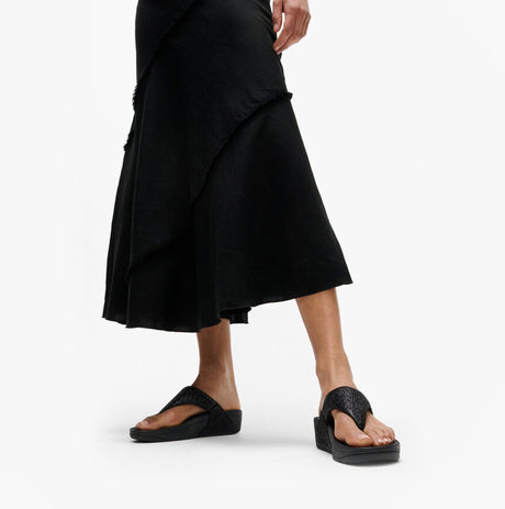 FitFlop LULU CRINKLED-SHIMMER Ladies Toe Post Sandals Metallic Black