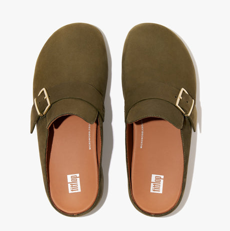 FitFlop SHUV BUCKLE-STRAP Womens Nubuck Clogs Mossy