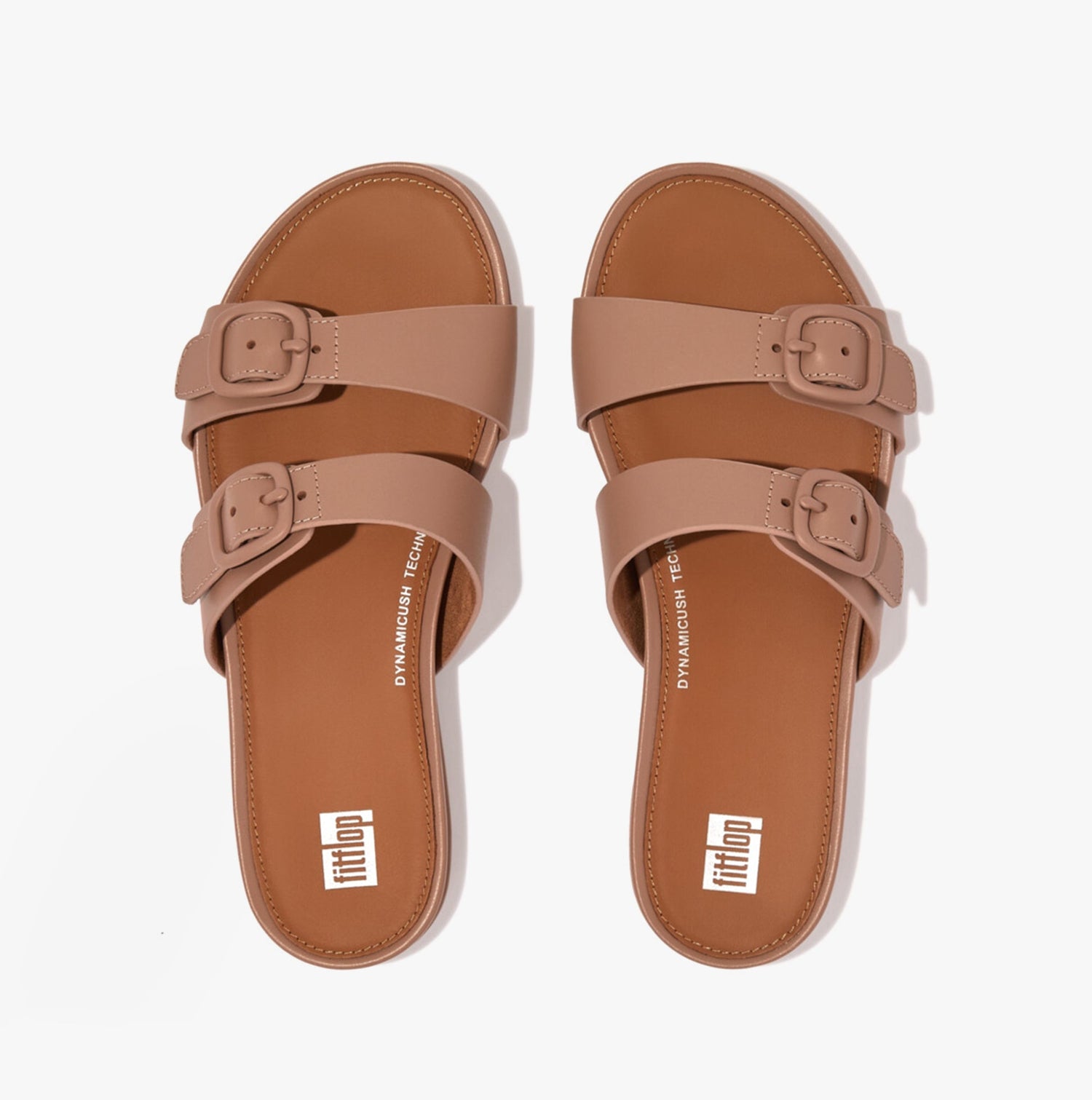 FitFlop GRACIE Womens Rubber-Buckle Leather Two-Bar Sliders Beige