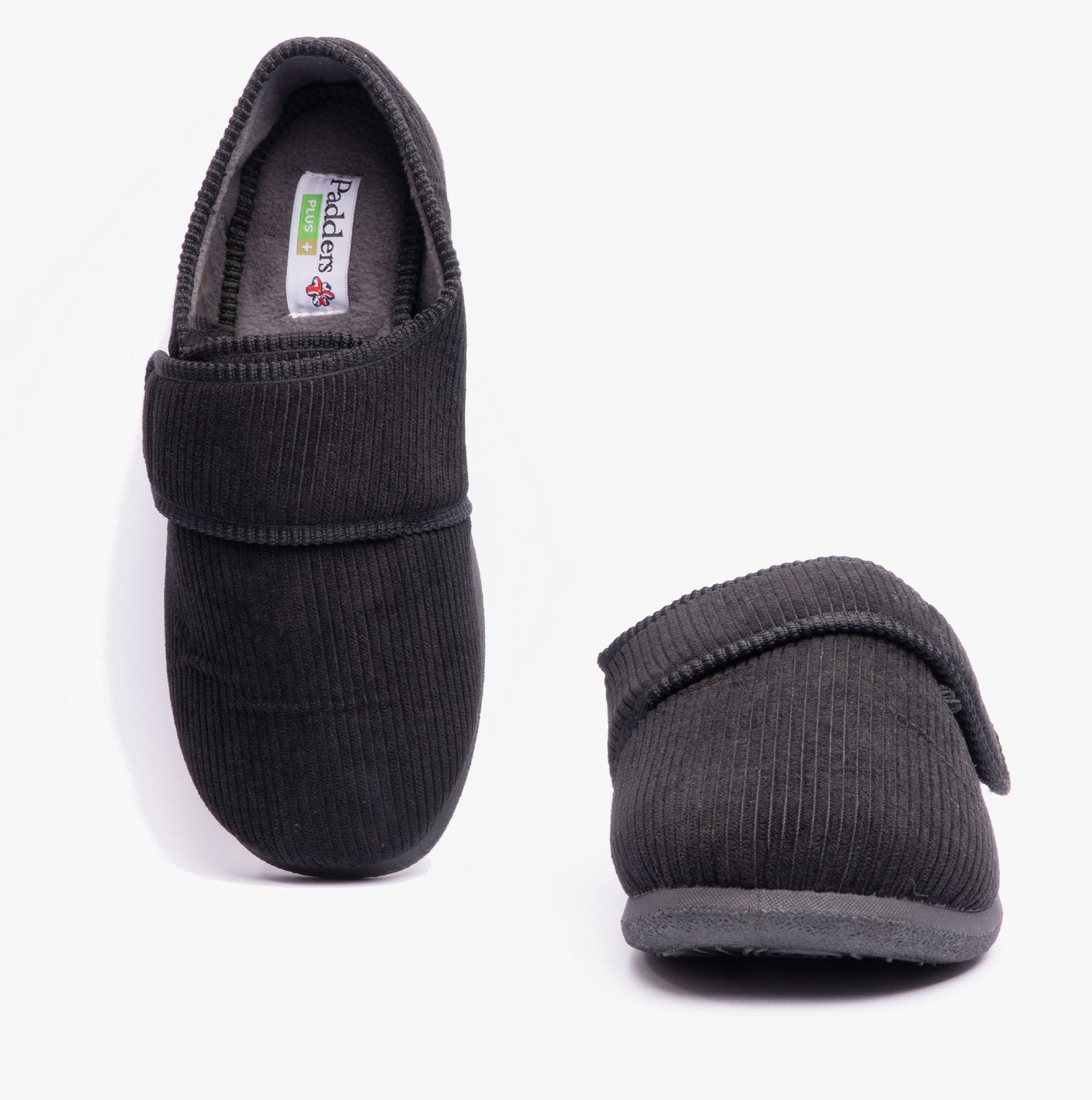 Padders OLIVER Mens Super Wide Touch Fasten Full Slippers Black