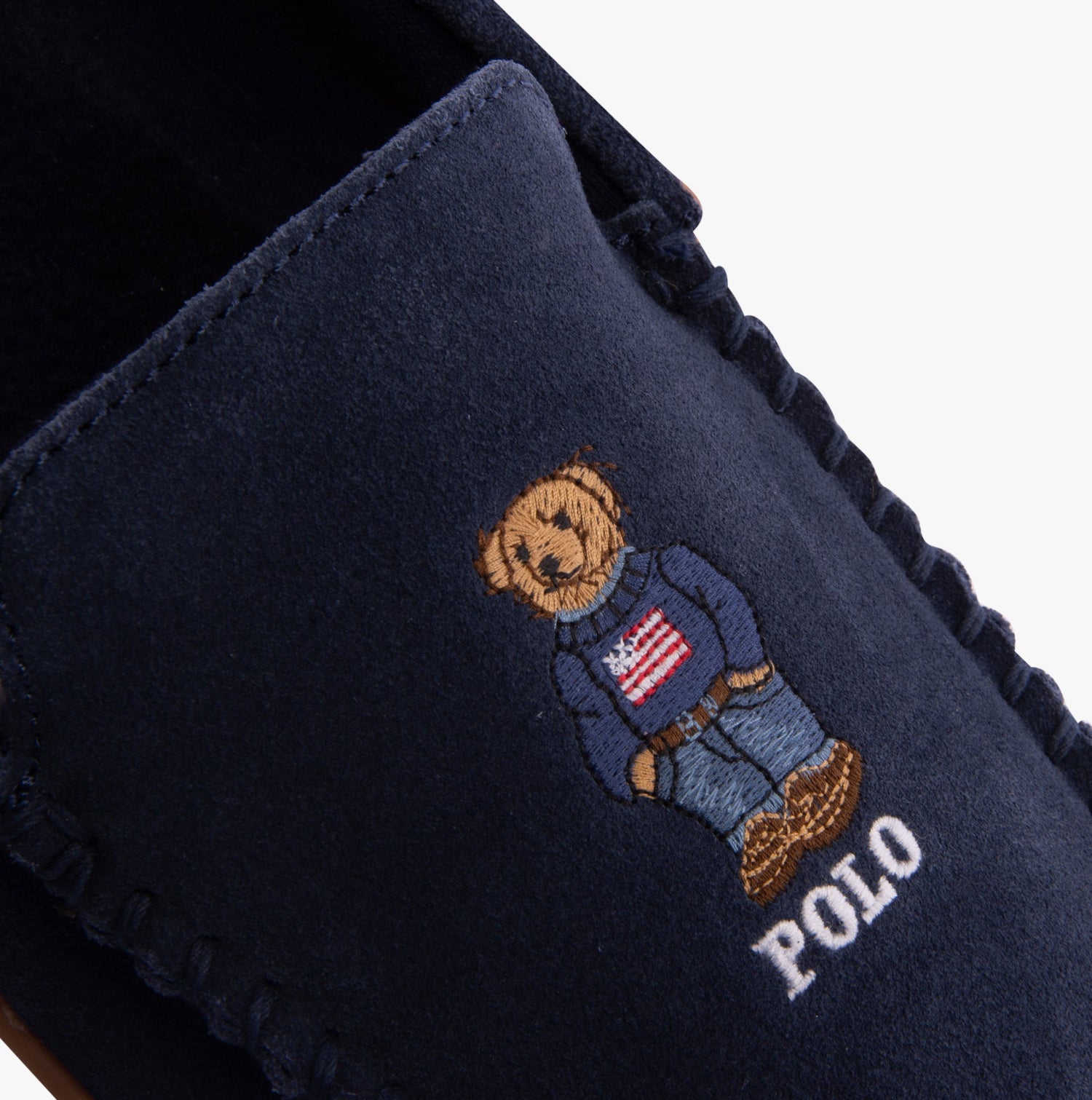 Polo Ralph Lauren BRENAN BEAR Mens Moccasin Slippers Navy Suede