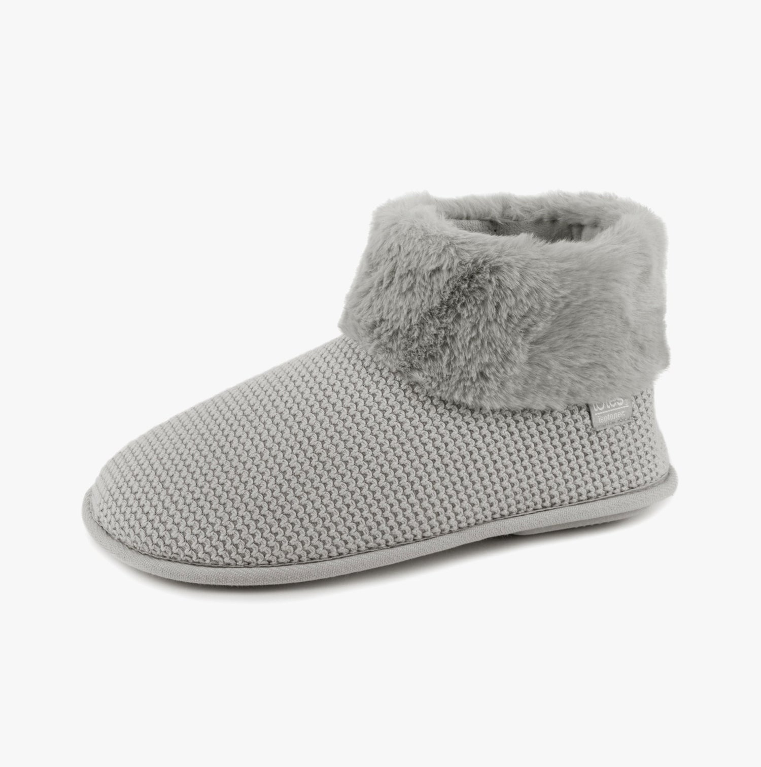 Totes Isotoner KNIT BOOT WITH FUR CUFF Womens Bootie Slippers Grey