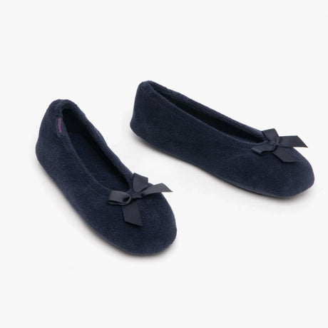 Totes Isotoner STRETCH TERRY BOW Womens Ballerina Slippers Navy