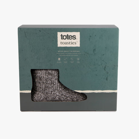 Totes Toasties KNITTED SHORT BOOT SLIPPER Mens Grey