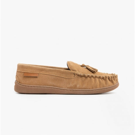 Totes Isotoner REAL SUEDE MOCC Mens Moccasin Slippers Tan