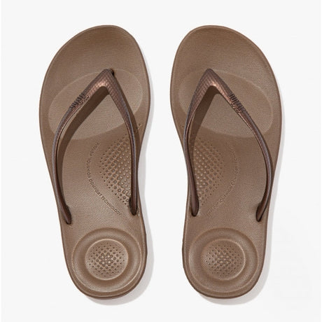 FitFlop IQUSHION Womens Ergonomic Toe Post Flip Flops Bronze