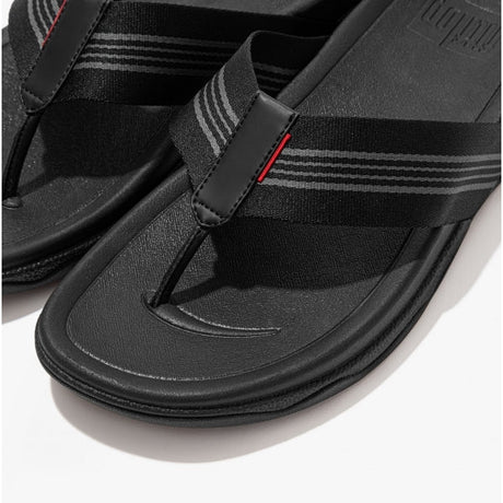 FitFlop SURFER STRIPE Mens Toe-Post Sandals All Black