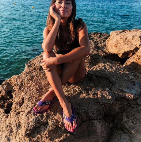 Gumbies ISLANDER Womens Recycled Flip-Flops Purple Sunflower