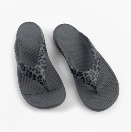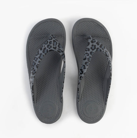 Totes Sol Bounce 0350FGLE Womens Toe Post Sandals Grey Leopard