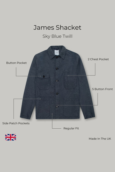 James Four Pocket Jacket - Sky Blue Twill