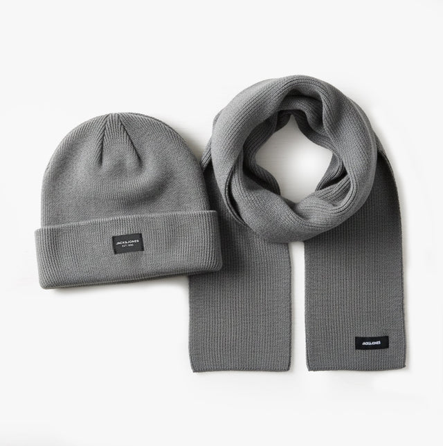 Jack & Jones DNA Mens Hat & Scarf Grey Melange