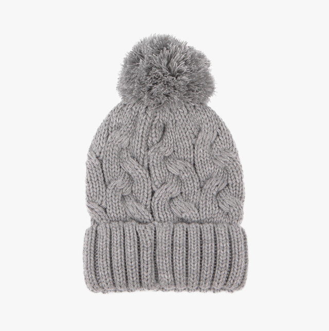 Totes Toasties CABLE KNIT Hat with Pom Pom Womens Bobble Grey