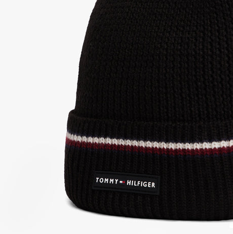 Tommy Hilfiger Signature Tape Mens Wool Beanie Black