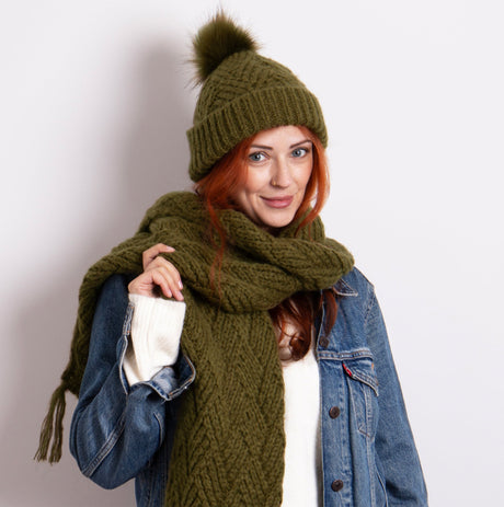 Barbour BRANTON BEANIE & SCARF Gift Set Mens Army Green