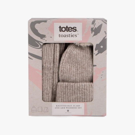 Totes Toasties KNITTED HAT SCARF & ARM WARMER GIFT SET Womens Oat
