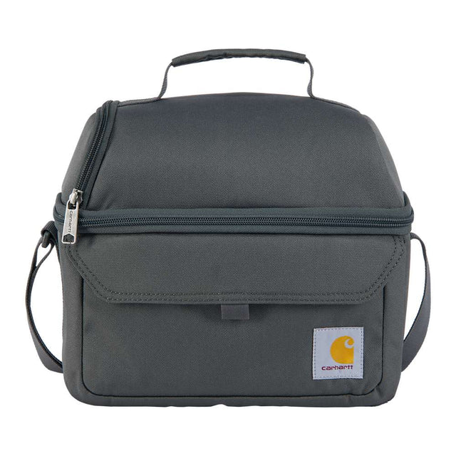 Rain Defender™ - Durable Water repellent finish · Shoulder strap and top handle · Insulted top compartment to separate food · Front zippered pocket for condiments and utensils · Fully insulated main compartment keeps contents cold for 8+ hours · Carhartt label on front · Woven · 600 Denier DWR Polyester · 100% Polyester