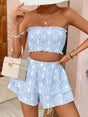 2pcs Women Holiday Floral Print Multi-Layer Ruffle Hem Set - Blue / 2XL is backordered and will ship as soon as it is back in stock.